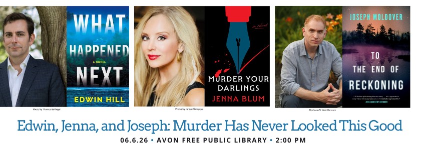 Meet mystery writers Edwin Hill, Jenna Blum, Joseph Moldover! This...